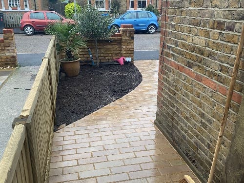 This Surbiton front garden had a layout typical of many Victorian terraces, but over time it had become awkward and underused. The original path was narrow and uneven, leaving little room for planting either side, and the overall entrance felt uninviting. Hard landscaping and borders lacked cohesion, and the space did not make the most of its potential to enhance the property’s kerb appeal.